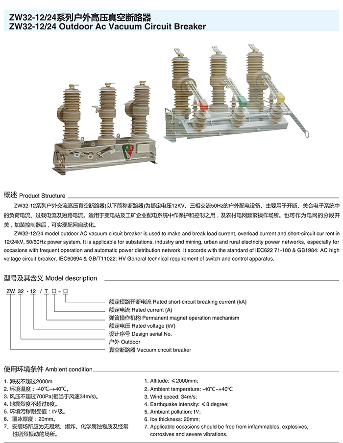 ZW10-12系列户外高压真空断路器