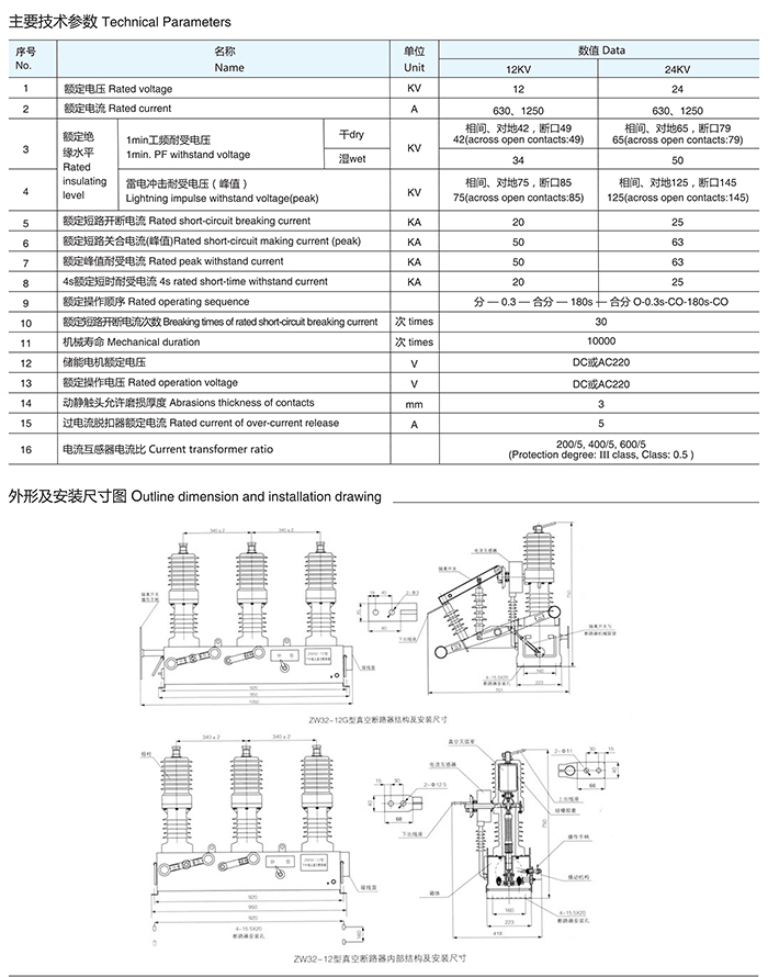 ZW32-12/24系列户外高压真空断路器