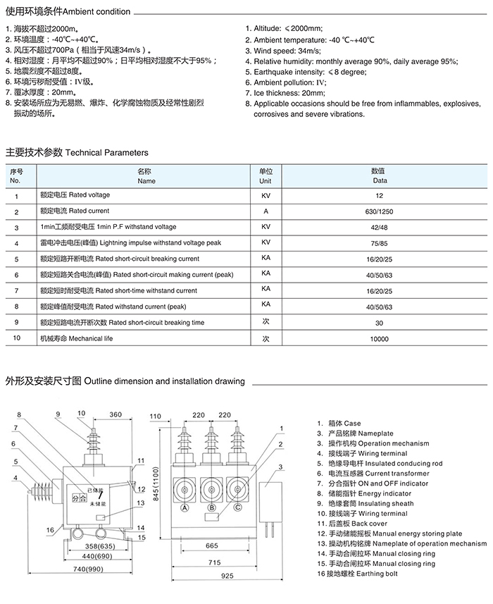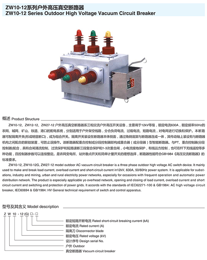 ZW10-12系列户外高压真空断路器