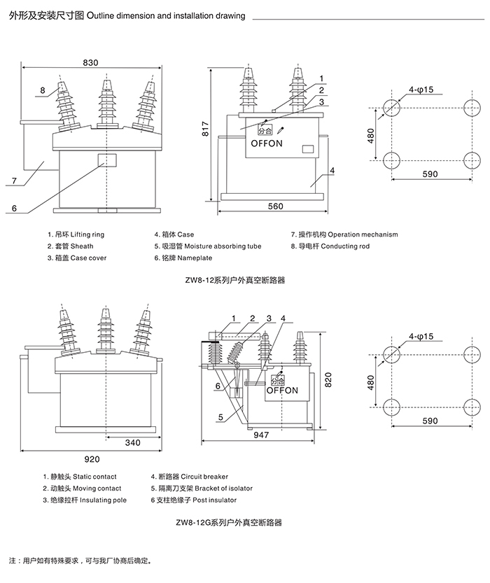 ZW8-12 ZW8-12G系列户外高压真空断路器