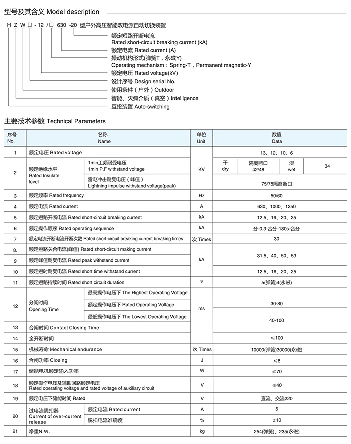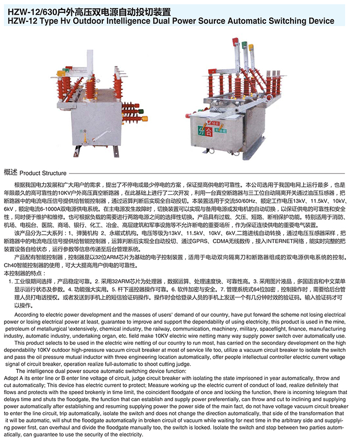 HZW-12/630户外高压双电源自动投切装置