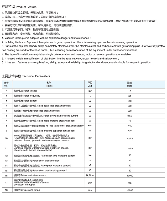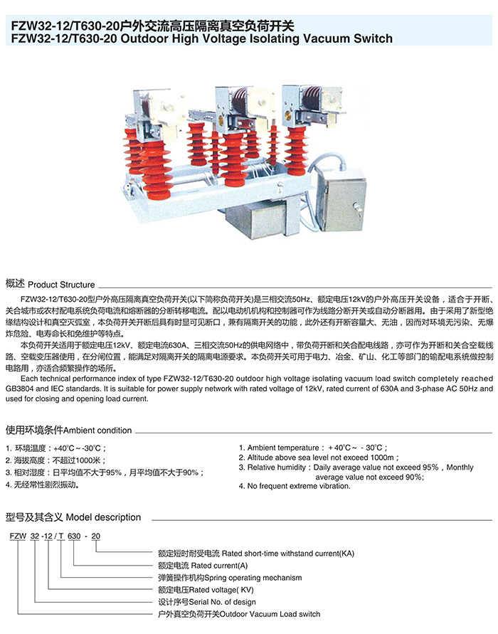 FZW32-12/T630-20户外交流高压隔离真空负荷开关