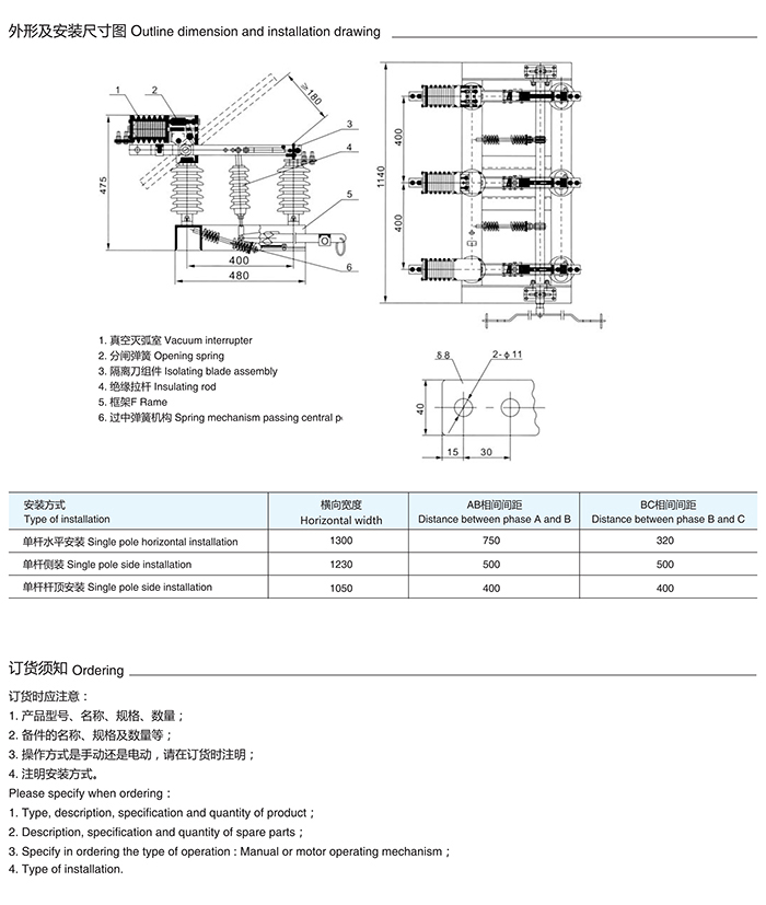 FZW□-40.5/1250-25户外交流高压隔离真空负荷开关