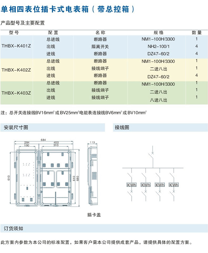 单相四表位插卡式电表箱(带总控箱)