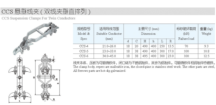 CCS悬垂线夹(双线夹垂直排列
