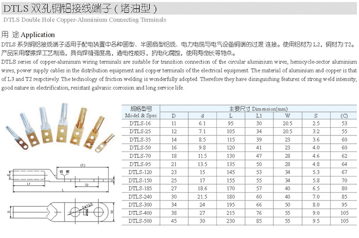 DTLS双孔铜铝接线端子(堵油型)
