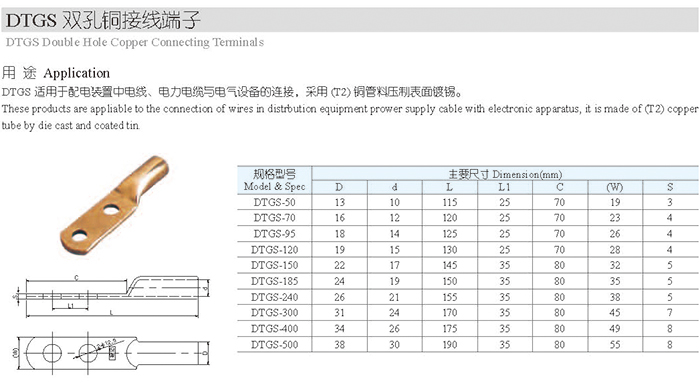 DTGS双孔铜接线端子
