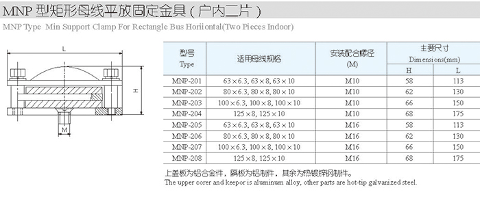 MNP型矩形母线平放固定金具(户内二片)
