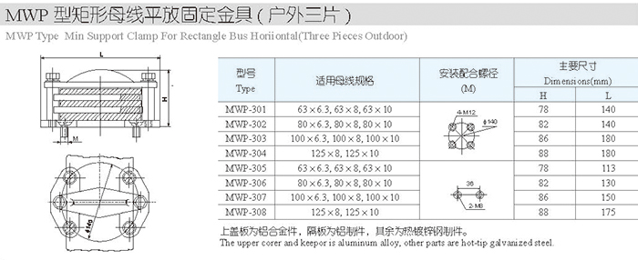 MWP型矩形母线平放固定金具(户外三片)