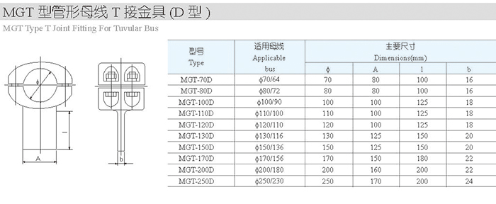MGT型管形母线T接金具(D型)