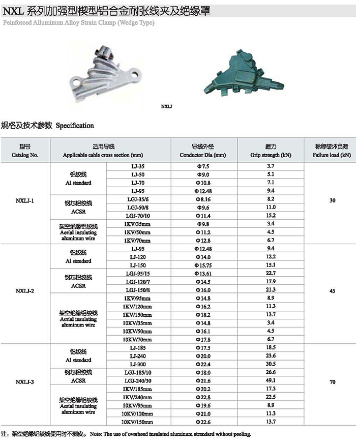 NXL系列加强型楔形铝合金耐张线夹及绝缘罩