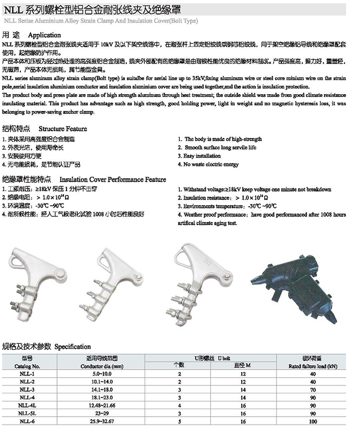 NLL系列螺栓型铝合金耐张线夹及绝缘罩