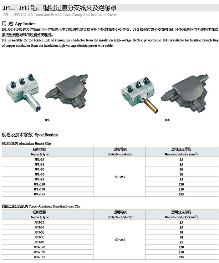 JFL、JFG铝、铜铝过渡分支线夹及绝缘罩