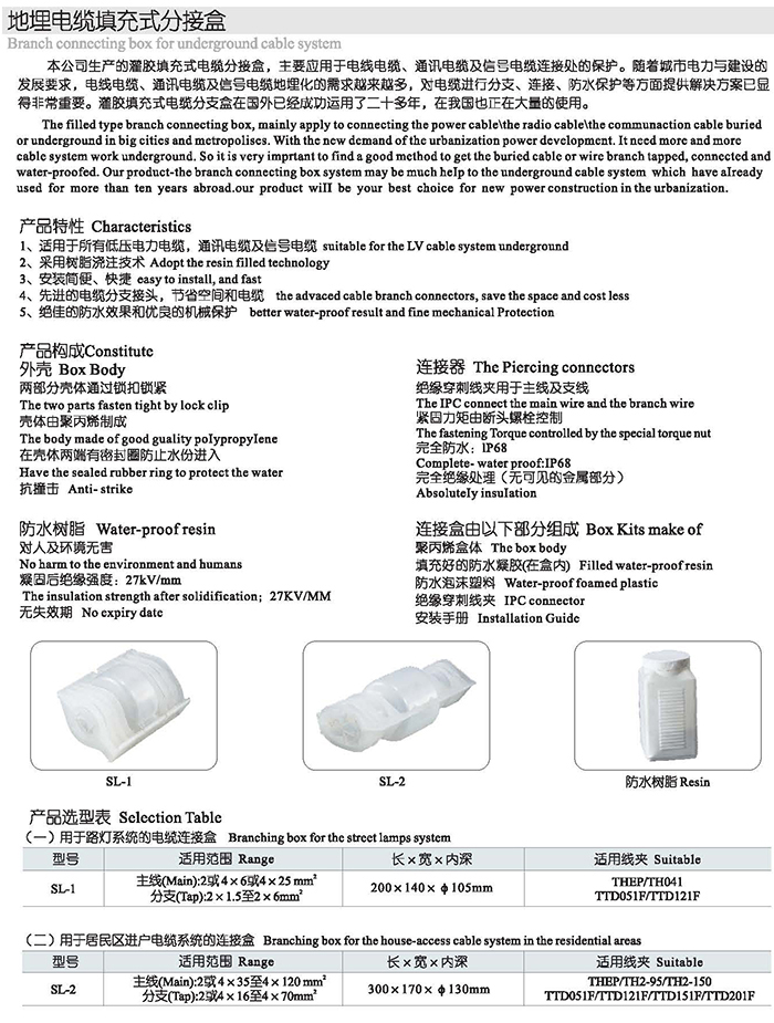 地埋电缆填充式分接盒