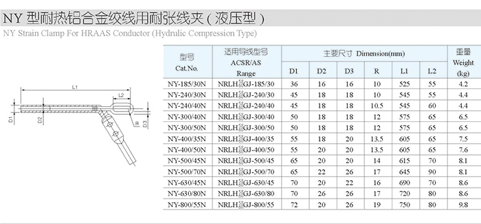 NY型耐热铝合金绞线用耐张线夹(液压型)