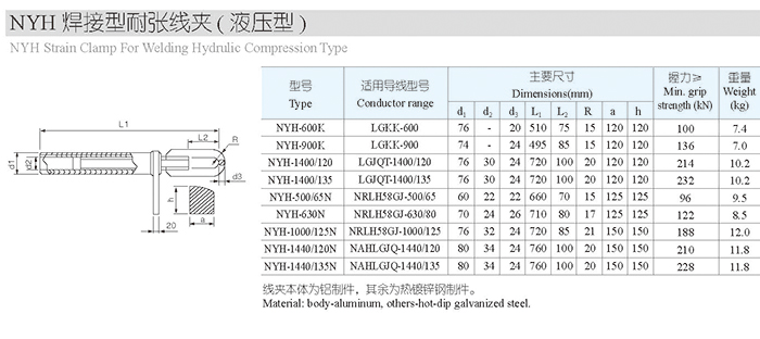 NYH焊接型耐张线夹(配引流线夹)(液压型)