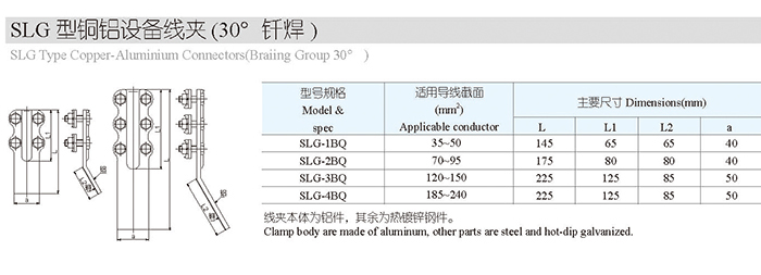 SLG型铜铝设备线夹(30°钎焊)