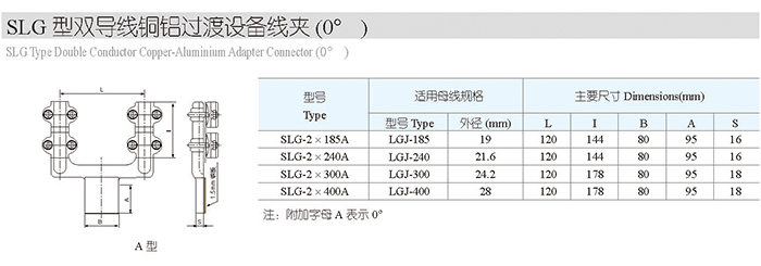 SLG型双导线铜铝过渡设备线夹(0°)