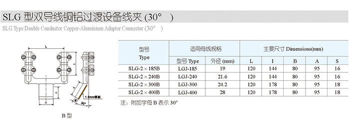 SLG型双导线铜铝过渡设备线夹(30°)