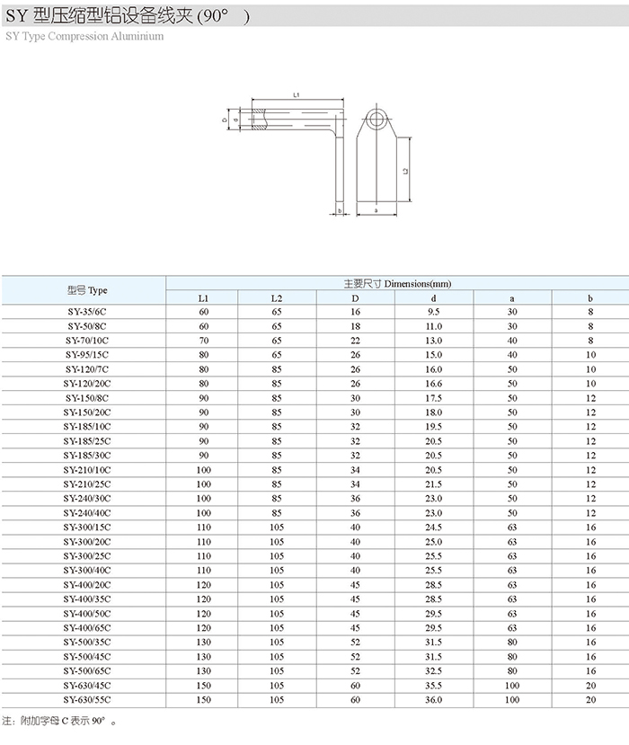SY型压缩型铝设备线夹(90°)