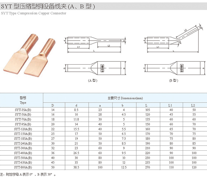 SYT型压缩型铜设备线夹(A、B型)