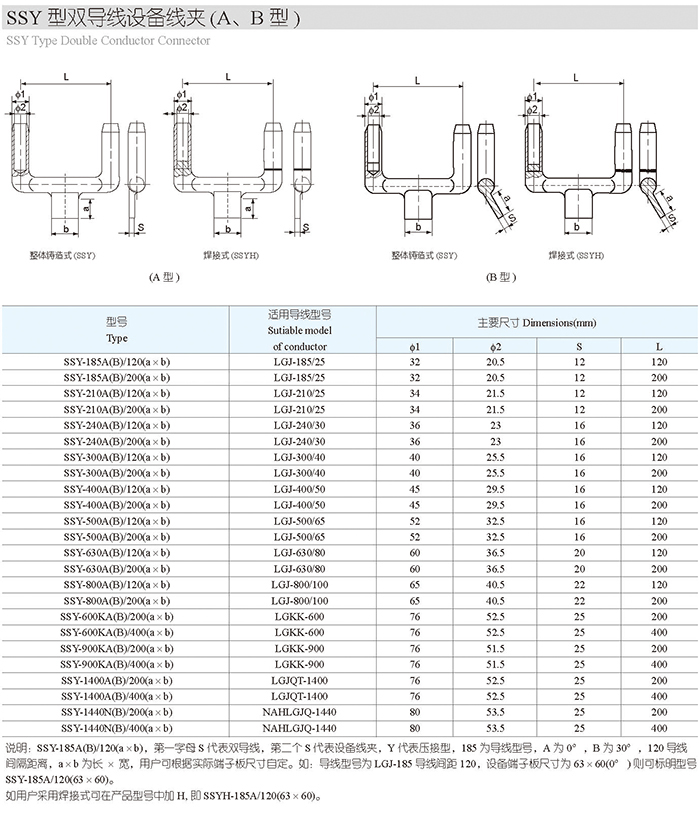 SSY型双导线设备线夹(A、B型)