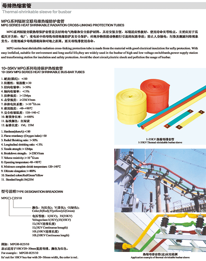 10KV、35KV MPG系列母排保护热缩套管