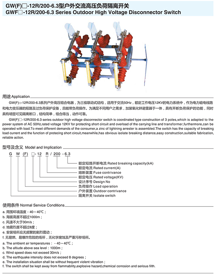 GW(F)□-12R/200-6.3型户外交流高压负荷开关
